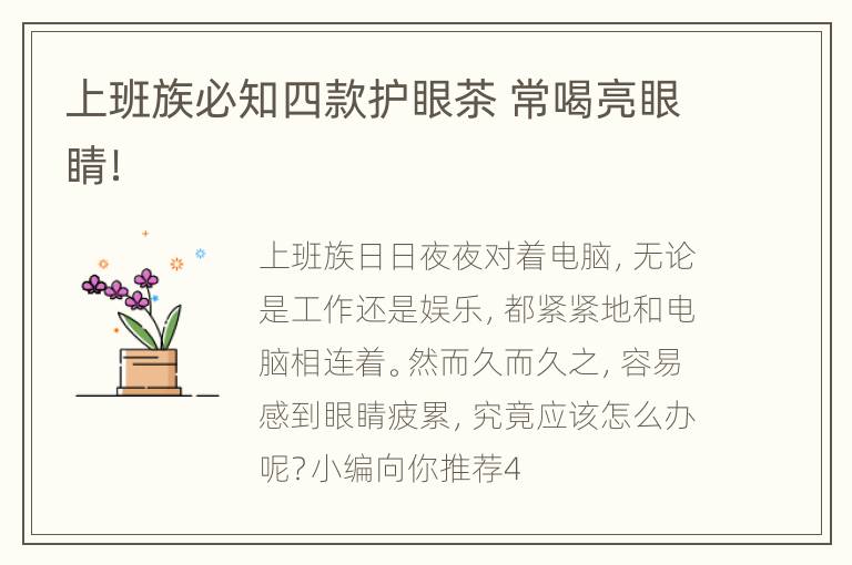 上班族日日夜夜对着电脑,无论是工作还是娱乐,都紧紧地和电脑相连着。然而久而久之,容易感到眼睛疲累,究竟应该怎么办呢?小编向你推荐4个眼睛保健,从细节以及饮食着手,做到健康护眼。
