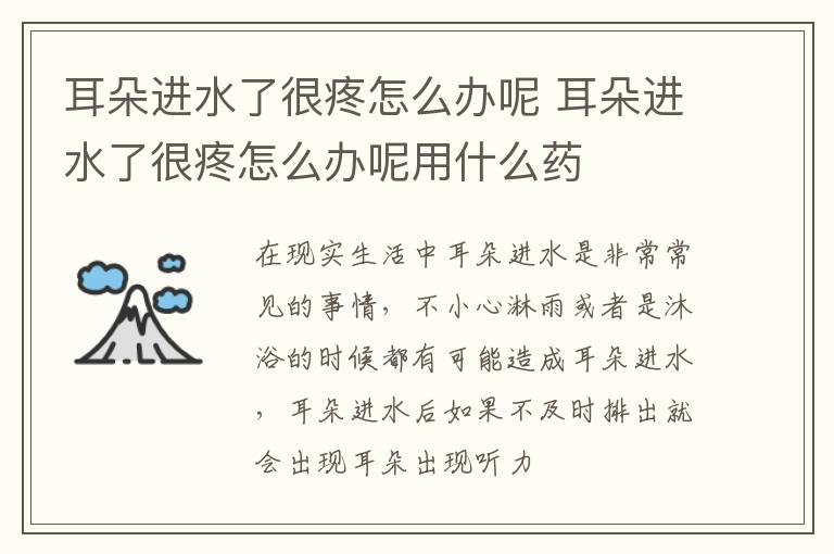 在现实生活中耳朵进水是非常常见的事情,不小心淋雨或者是沐浴的时候都有可能造成耳朵进水,耳朵进水后如果不及时排出就会出现耳朵出现听力问题,对耳朵非常不好,长期得不到好的护理就会容易出现化脓的情况,十分危害人体健康,对耳朵非常不好,那么耳朵进水了很疼怎么办呢?下面就让我们一起来了解一下。