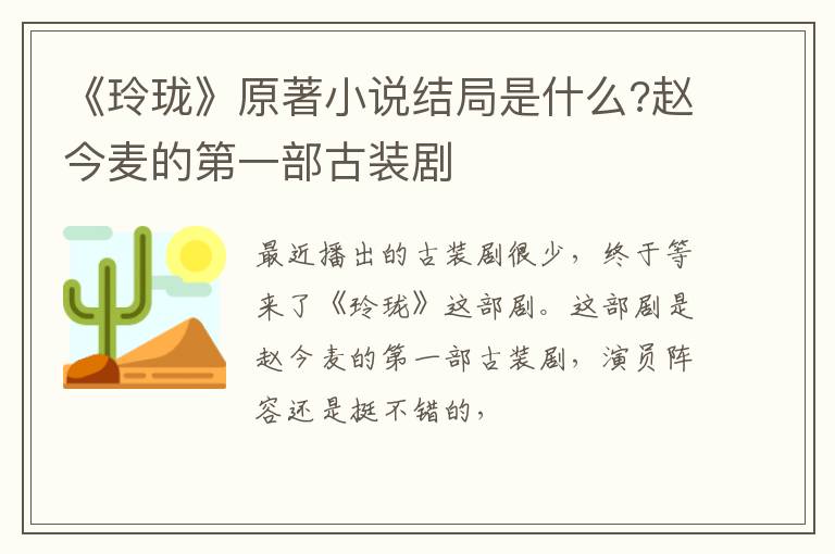 最近播出的古装剧很少,终于等来了《玲珑》这部剧。这部剧是赵今麦的第一部古装剧,演员阵容还是挺不错的,有袁弘,林一,曾黎还蔡文静。今天就给大家说说,《玲珑》原著小说结局是什么?